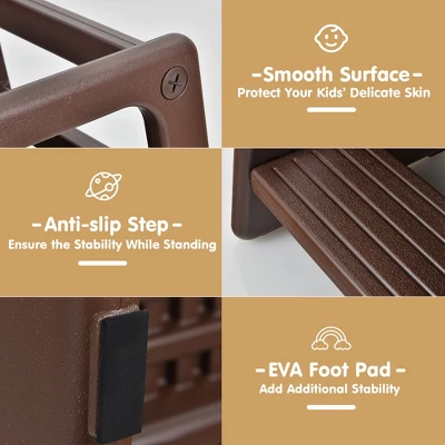 With 3 adjustable heights, this toddler tower not only grows with your kids, but also allows your children to experience how to cook, wash hands, brush teeth and other daily activities with you. Therefore, this toddler stepping stool cultivates kids’ hands-on abilities while promoting parent-child relationship. What’s more, the double safety rails, smooth surface, anti-slip steps and EVA foot pads make this kids learning stool safe for your kids to climb up and stand on. If your children grow so tall that they don’t need this kids standing tower’s help anymore, just remove the double safety rails to make it used as a kids chair for companionship in the future.