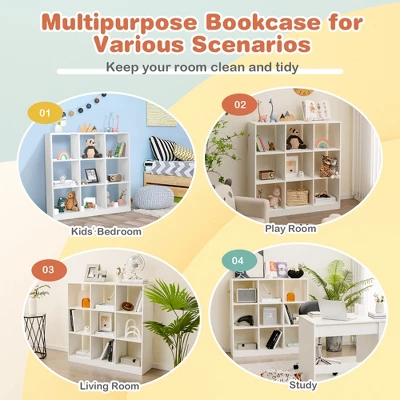 - 9-Cube Storage Organizer: This 4-tier storage organizer consist of a spacious tabletop and 9 storage cubes, offering ample space for toys, books, snacks, sports supplies, plants and ornaments. With these classified storage options, kids can learn to organize their own stuff and become the master of storage!