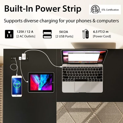 - 2 AC Outlets & 2 USB Ports: The L shaped desk has 2 AC outlets (125V/12A) & 2 USB ports (5V/2A) built in. When you’re busy with work or games, you can easily connect phones, headsets, lamps or power banks to the charging station for fast charging.