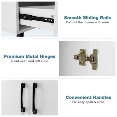 - User-friendly Details: Fitted with convenient handles and metal hinges, it’s soft and quiet to open and close the cabinet. Besides, the smooth sliding rails allow you to pull out the drawer with ease. And the fully-enclosed storage space not only protects your privacy, but also saves your efforts on daily cleaning.