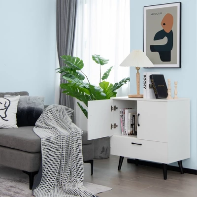 - Ample Storage Space: The storage cabinet provides large enclosed space, including a spacious door cabinet and a pull-out drawer. It meets your storage needs and helps create a clean and tidy living space. What’s more, the wide top of the cabinet can also serve as a display platform for your favorite ornaments.