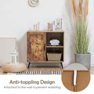 Have you found a favored storage cabinet? Our single door cabinet would be one of the appropriate choice for you. The combination of spacious cabinet top, 1 enclosed cabinet and 2 open shelves is flexible for you to store daily items in different sections. Moreover, the 3-position adjustable shelves facilitate the storage of different sized items. Considering safety use, the floor cabinet comes with anti-toppling device for higher stability. This mid-century storage cabinet is harmoniously combined with any interior decoration, which is suitable for living room, bedroom, dining room, kitchen, etc.