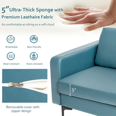 - Selected Materials for Coziness: Filled with 5” thick high-density sponge, the seat cushion is soft enough to bring you optimal comfort. The backrest cushion padded with cotton, down and latex particles fully relaxes your back muscles. Besides, the skin-friendly and breathable leathaire fabric offers cozy touch.