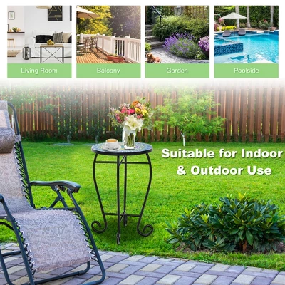 Costway Mosaic Side Table Accent Table Round Balcony Bistro End Table OrangeBlueNavy