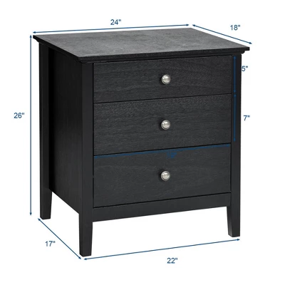- Adequate Storage Space: Coming with 3 deep drawers and spacious desktop, our nightstand provides you with plenty of space to store books, photos and any other items. The weight capacity of each drawer is 11 lbs and the top surface is allowed 110 lbs. Through the convenient handles, the drawers can be easily pulled in or out.