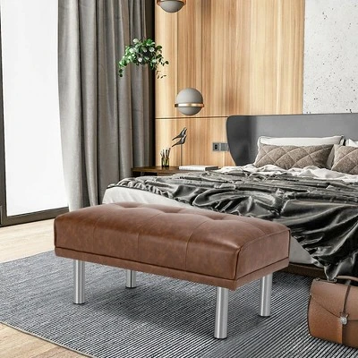 - Soft PU Leather Seat: Our bench is beautifully upholstered with high-bounce sponge and water-resistant & tufted PU cover, which is not likely to collapse after an amount of using time. And it is comfortable to sit on it with a sufficient seating area of 33.5” x 20”.