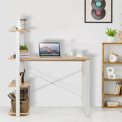 - Reversible Storage Shelves: 4 open shelves of this bookshelf desk provide plenty of space for storing books, hosts, office supplies and small devices for convenient usage. The shelving units can be positioned on the left or right as a bookcase or display shelf according to your daily needs, which perfectly suit different room configurations.