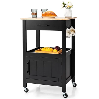 Costway Rolling Kitchen Island Cart On Wheels Bar Serving Trolley W/Drawer Cabinet BlackWhite