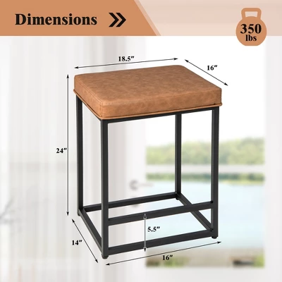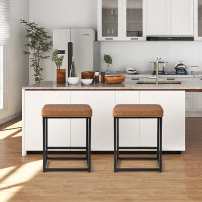 Are you looking for a comfortable and stylish seat for your dining table, kitchen island or home bar? Take a look at this 24-inch counter height bar stool set! With thick seat cushions and ergonomic footrests, the kitchen stools will give you a comfortable experience and add enjoyment to the leisure time. Besides, the selected materials, including the durable PVC leather, the high-density sponge and the rustproof metal pipes, can remain in good condition and serve for long. And the thoughtful design of the adjustable foot pads can avoid wobbling or tipping. Moreover, the modern square stools match various home decorations, and will definitely help to build up an ideal home bar.