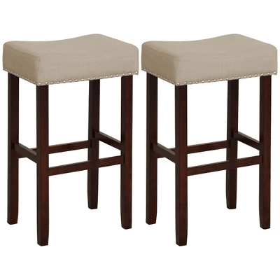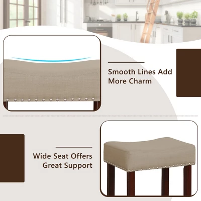 - Stylish & Practical Bar Stools: The beautiful beige/gray cushion matches well with the brown wooden frame, making the bar stool set a wonderful addition to your room. Meanwhile, the nailhead trim design and smooth lines add more charm.
