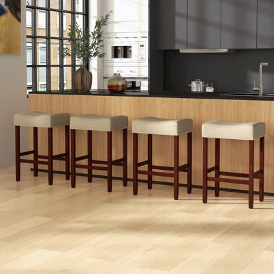 - Perfect Height & Backless Design: With perfect 25” height, our saddle bar stool set is suitable for 35”-39” counters or kitchen islands. Additionally, with backless design, the bar stool set can be put under the counter to save more floor space.