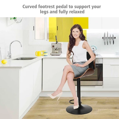 - Excellent Comfortable Design: The back and cushion of bar stools are made of soft PU leather and filled with sponge. You can sit in the chair completely and fully relieve the pressure on the lumbar spine, giving you extra comfort. Equipped with a curved footrest, you can put your feet on it and relax your leg.