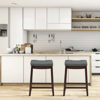 Are you eager to brighten up someplace with brilliant furnish? Then why not bring an effortlessly attractive look into your kitchen, restaurant or pub with this barstool. It will give you great satisfaction from contemporary design to unique saddle seat. The seat features soft upholstery and high resilience foam shall let you feel more comfortable. Meanwhile, compared with other wood, rubber wood features better durability and toughness, and that’s why it is adopts rubber wood legs. In this way, sturdy and thickened rubber wood legs will support you powerfully when you sit in the front of bar counter to enjoy a drink. 4-Sided footrest can not only rest your feet but also plays the role of reinforcement.