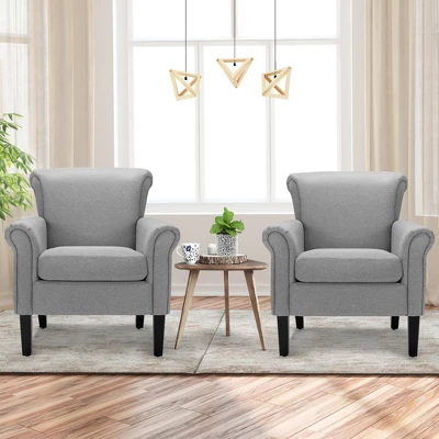 Costway Set Of 2 Upholstered Fabric Accent Chairs W/ Rubber Wood Legs Dark GrayLight Gray