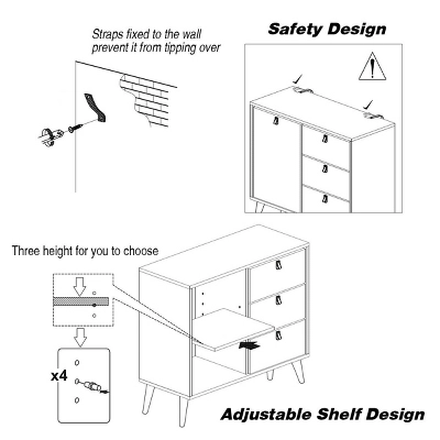 This is our brand new and timeless storage cabinet which offers ample space to store daily necessities and arranges the clutter orderly. Featuring three drawers and a large cabinet with an adjustable shelf, the storage cabinet meets your different needs for storing and makes a good use of space. Crafted of thickened engineered wood with premium durability, the storage cabinet will spend many years of time with you. Whether be used as a display cabinet in your living room, or act as a console table in the study, the 3-drawer chest will be an eye-catching addition for its elegant appearance. Come and buy the storage cabinet quickly and I believe it’s a perfect addition for your room!