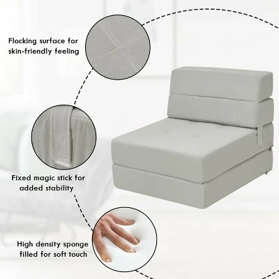 - Multifunctional Tri-fold Sofa Bed: The tri folding sleeper chair can be used as a sofa for extra seating. More, the futon sofa bed can be converted into a chaise when you simply unfold 2 sections and also works great as a floor mattress for sleepovers.