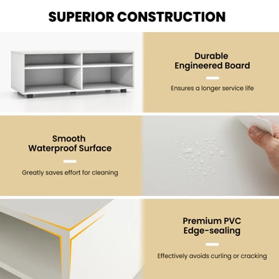 - Simple Style, Wide Application: Clean lines mixed with modern flair give this 4-cubby storage cabinet a refreshing appearance that adds an on-trend touch to your home. Whether used as living room TV stand, bedroom storage cabinet or hallway console table, the unit will be a focal point.