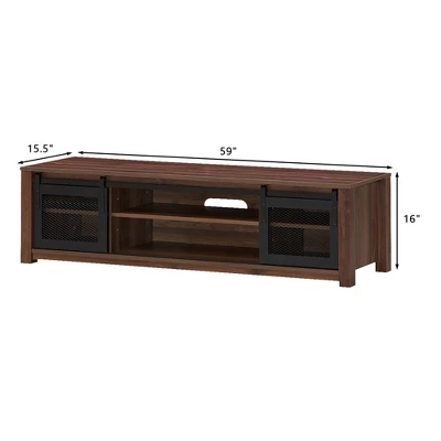 Crafted of high-quality engineered wood and MDF, this TV cabinet is stable and durable for long-term use. Spacious desktop will fit up to a 65” TV and some decorations. With adjustable design, 2-tier storage shelves and 2 large cabinets can not only offer plenty of space, but also meet the needs of items of different height. What’s more, 2 sliding metal mesh doors allow you to adjust the door position freely and add an aesthetic feeling of this TV stand. With clean line and modern appearance, it is suitable for your living room, bedroom, office, etc.