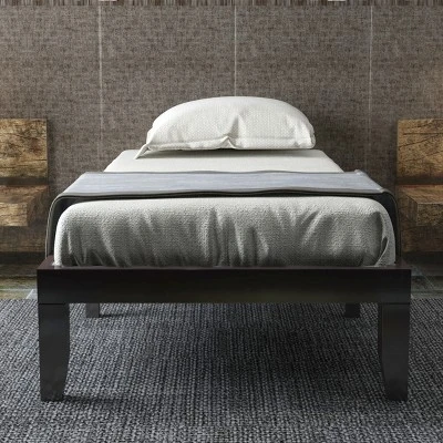 Looking for a wooden bed that provides you a stylish and strong support for your mattress? This is our elaborate twin size wooden bed frame which is made of solid rubber wood and poplar wood. The bed frame is stable and durable which will give you long years of enjoyment. With 6 solid legs on both bed sides ,the bed frame has a high weight capacity of 250 lbs to firmly support your mattress. Our bed frame has a modern and concise design which can go well with the decoration of your rooms or hotels. The 10.5-inch under-bed space is good for ventilation which extending the life of the mattress. At the same time, sufficient space also can be convenient for you to store unused boxes. Combining with reliable quality and premium craftsmanship, our bed frame with a proper mattress can provide you with excellent comfort while sleeping. Why not take it home right now?