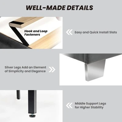 - Designed for Optimal Comfort: The headboard is covered with high quality velvet that is characterized by good tactility and skin-friendly touch. Moreover, filled with high density and soft sponge, the upholstered bed frame gives you comfortable user experience whenever you want to rest and sleep on the bed.