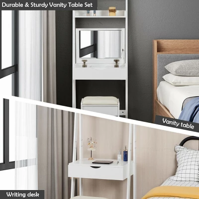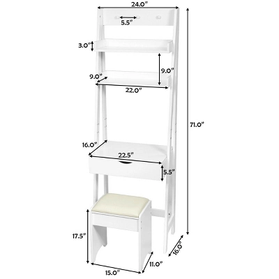 - Flip top mirror can turn the makeup table into a writing desk in seconds.