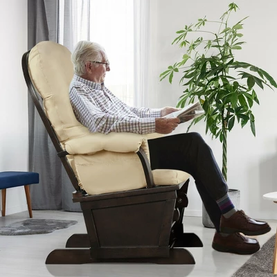 Costway Wood Glider & Ottoman Cushion Set Baby Nursery Rocking Chair