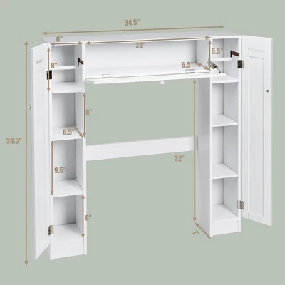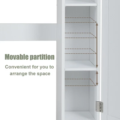 Our new clever and versatile bathroom spacesaver allows you to utilize extra space for all your bathroom storage needs. The generous center cabinets and two side cabinets allow you to organize and separate your personal products. Paper holder, one fixed shelf and two adjustable shelves behind each side cabinet. A pull-down door at the center for holding some bath items. The cabinet provides excellent storage solutions for bathrooms with limited space. This bathroom space saver features sturdy MDF construction, and its white finish ensures that it will match and accent any existing decor. It is a free standing furniture piece, which conveniently fits over standard toilet tanks and add easy storage for roll paper and other bathroom necessities. Don’t hesitate to buy it