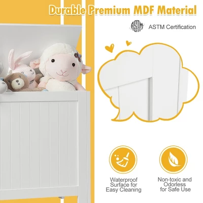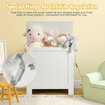 - Safe Material & Stable Structure: Made of high-quality MDF material, this toy box will be safe enough for both adults and kids to use, as it is non-toxic and odorless. In addition, the MDF plate with good stability can greatly improve the bearing capacity, with 44 lbs of the top panel and 22 lbs of the interior.