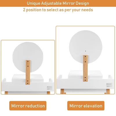 Are you looking for a unique but practical dressing table? Please choose our dressing table! It will never let you down with practical functions as well as charming appearance. Featuring a drawer and spacious desktop, this makeup dresser table can help you to put on makeup incredibly easy because you can find your cosmetics, jewelries and hair accessories quickly. And the round knob of the drawer gives for a firm grip for opening and closing drawer easily. In addition, there are two rows of holes beside table in unique design to help you to thread the tangled hair-dryer cord. Combining elegant design and fashion style, this glamorous dressing set is a perfect addition to your home. You can also choose this dressing table as a perfect gift for your daughter or female friends. The makeup dressing table comes with an installation instruction and all necessary accessories. It is easy to install by yourself even if you are a girl in short time. Don�� t hesitate to buy it.