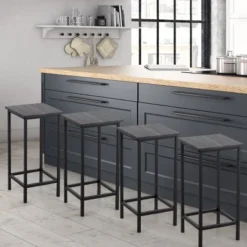 Costway Set Of 4 Bar Stools 24” Counter Height Backless Dining Stools Wood
