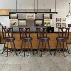 Costway Set Of 4 Swivel Bar Stool 24” Counter Height Leather Padded Dining Kitchen Chair