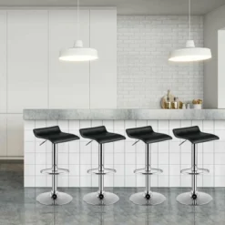 Costway Set Of 4 Swivel Bar Stool PU Leather Adjustable Kitchen Counter Bar Chairs Black