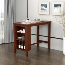 Costway Bamboo Bar Table 48” High Top Console Dining Pub Table For Narrow Space Natural