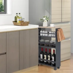 Costway 4-Tier Slim Kitchen Storage Cart Narrow Slide Out Trolley Adjustable Shelf WhiteGrey