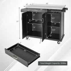 Costway Drop-Leaf Kitchen Island Trolley Cart Wood Storage Cabinet W/ Spice Rack Black
