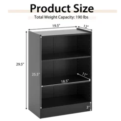 Costway 3-Tier Bookcase Open Multipurpose Display Rack Cabinet With Adjustable Shelves Black/Brown