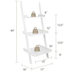 Costway 3 Tier Leaning Rack Wall Ladder Book Shelf Bookcase Storage Display Multipurpose