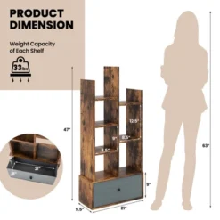 Costway Industrial Bookshelf Rustic Wooden Shelf Organizer With Non-woven Fabric Drawer
