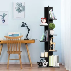 Costway Bookshelf Tree-Shaped Bookcase W/13 Storage Shelf Rustic Industrial Style