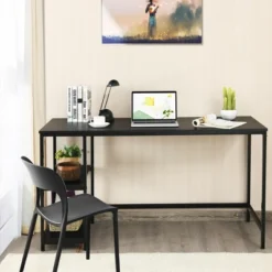 Costway 55” Computer Desk Writing Workstation Study Table Home Office With Bookshelf Black/Rustic