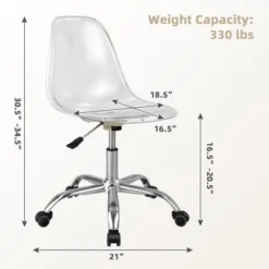 Costway Set Of 2 Rolling Acrylic Armless Desk Chair Swivel Vanity Ghost Chair Adjustable