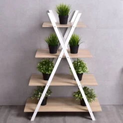 Costway 4-Tier Bookshelf Storage Display Shelves Bookcase Ladder X-Shape