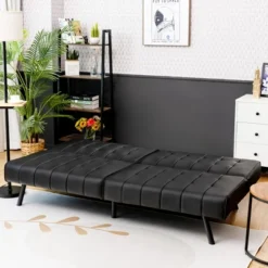 Costway Futon Sofa Bed PU Leather Convertible Folding Couch Sleeper Lounge White/Black/Grey