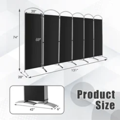 Costway 6 Panels Folding Privacy Screen 6 Ft Tall Fabric Privacy Screen For Home