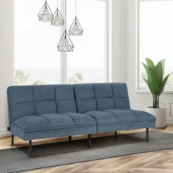 Costway Modern Convertible Futon Sofa Bed Linen Fabric Folding Couch Recliner GreyAquamarineBlue