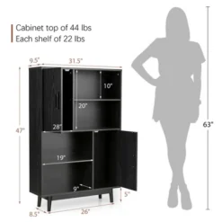 Costway Sideboard Storage Cabinet Bookshelf Cupboard W/Door Shelf Black / White / Espresso