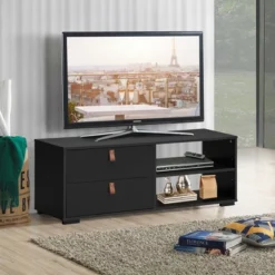 Costway TV Stand Entertainment Media Center Console For TV’s Up To 60” W/Drawers WalnutBlack