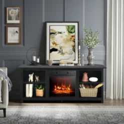 Costway 58” 2-Tier Fireplace TV Stand W/18” Electric Fireplace Up To 65”