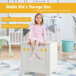 Costway Wooden Toy Box Kids Storage Chest Organizer W/ Flip-Top Lid & Safety Hinge White