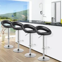 Costway Set Of 4 Bar Stools Swivel Bar Height Chairs With PU Upholstered Seats Kitchen
